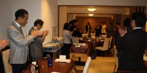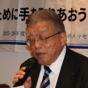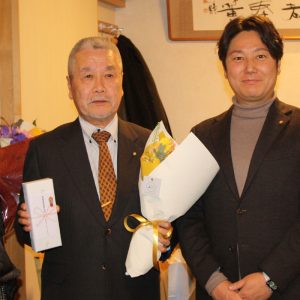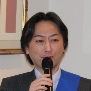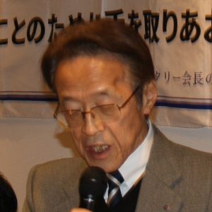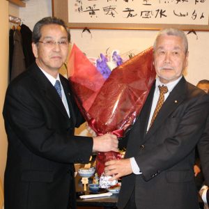 こういうおめでたい席で、「黄綬褒章」を受章ということで、西クラブとしては3人目になるのですか。大変会員も喜んでいますし、大変名誉に感じております。西クラブがこれからも、頂ける人もいると思うのですが、私みたいに、職業を転々とした人間には、たぶん一生縁がないんですが、大変名誉なことですから、私達も一緒に楽しんで今日は、ゆっくりと食事を頂きたいと思います。こういう挨拶をする機会もなかったのですが、やはり皆さん、集まって頂いて、お祝いして頂けるということは、大変皆さん、暖かい、気持ちがここに結集しているんだなと、感じております。これからも、まだ、お若いですから、ますます頑張って頂いて、お仕事にも励んで頂きたいなと、思います。西クラブもこれからですね、大変良い方向に、皆さんで努力して、ますます良い会に、育ってくれればうれしいなと思います。今日は、福岡さん、本当におめでとうございました。
