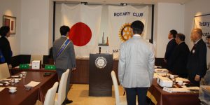 皆様、改めまして、こんにちは。今日も皆さん例会にご参加頂きまして誠にありがとうございます。また、故関口 宏会員奥様、今日はお越しいただきまして、誠にありがとうございます。今年は当クラブが40周年ということで、その歴史を振り返る、卓話、並びの例会を沢山やらせて頂いているのですが、関口宏会員が残された足跡というのは、たいへん我々クラブにとっては、大きなものでありましたので、是非その話を、今日は関口貴之会員にお話をして頂く例会となりますので、どうぞよろしくお願いいたします。